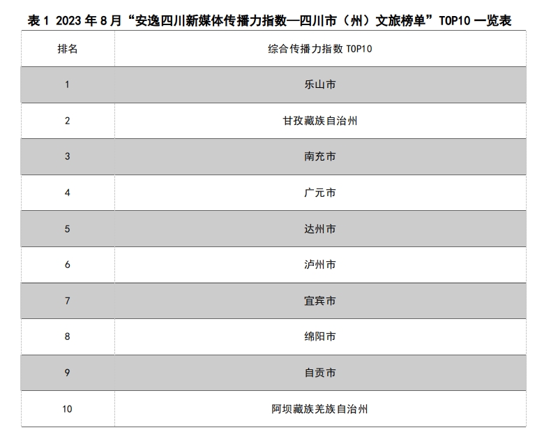 四川省文化和旅游宣传信息中心参考文旅产业指数实验室制定的评估体系,包括综合传播力指数、微信传播力指数、微博传播力指数、头条号传播力指数和抖音号传播力指数5项,形成“2023年8月安逸四川新媒体传播...... 【详细】