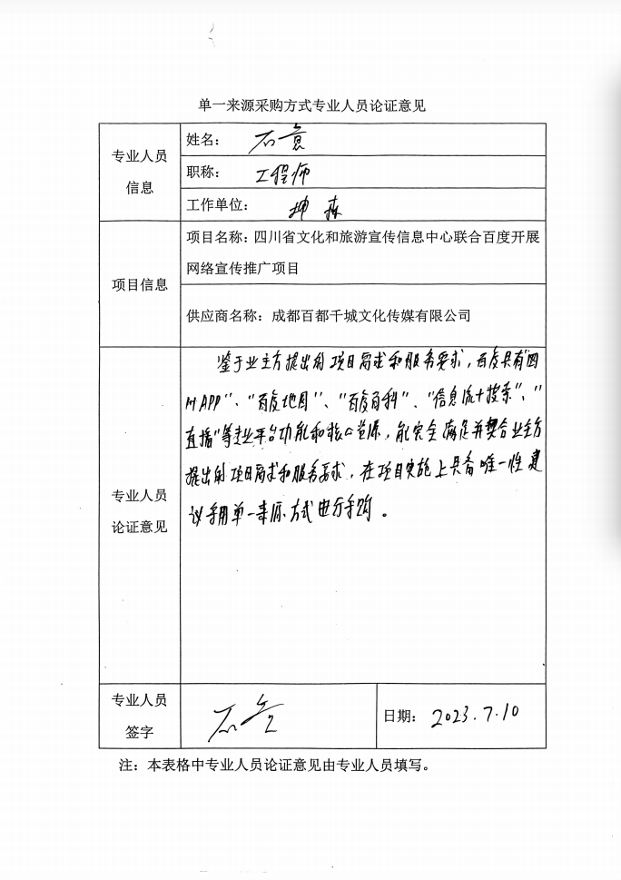 各潜在供应商、单位、个人: 四川省文化和旅游宣传信息中心拟采用单一来源方式采购四川省文化和旅游宣传信息中心联合百度开展网络宣传推广项目,现就此事项向潜在供应商广泛征求意见: 一、采购人名称:四...... 【详细】