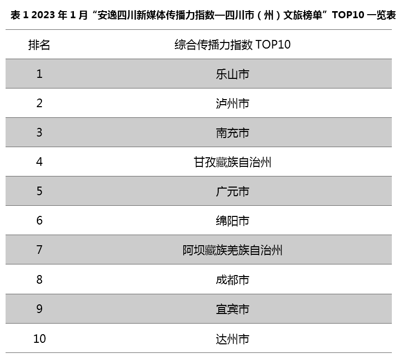 四川省文化和旅游宣传信息中心参考文旅产业指数实验室制定的评估体系,包括综合传播力指数、微信传播力指数、微博传播力指数、头条号传播力指数和抖音号传播力指数5项,形成“2023年1月安逸四川新媒体传播...... 【详细】