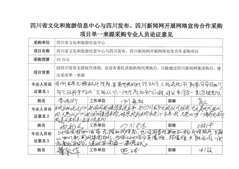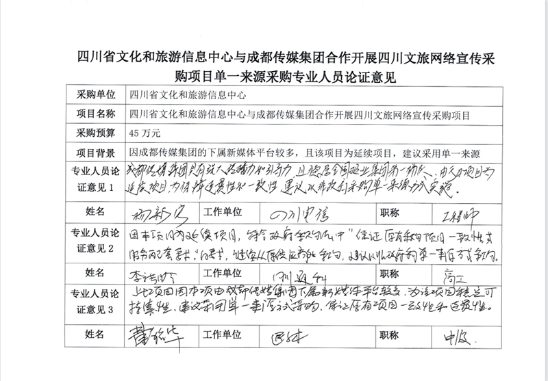 各潜在供应商、单位、个人: 为配合2022年网络宣传重点工作,宣传推广四川省文化和旅游发展大会,就四川文旅宣传特点向世界展示四川人文历史、美食特色,展现四川丰富的旅游资源,现拟采用单一来源方式与...... 【详细】