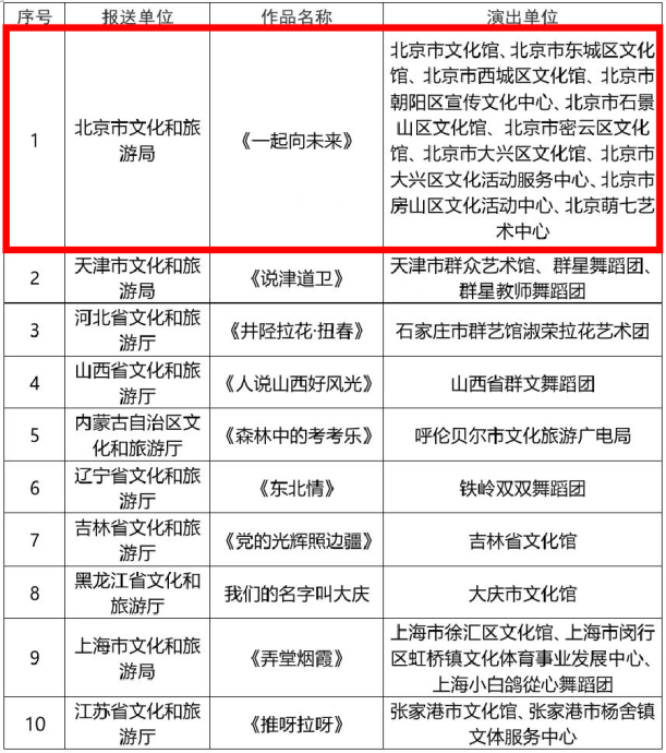 根据《文化和旅游部办公厅关于开展第十九届群星奖广场舞、群众合唱评奖工作的通知》(办公共发〔2022〕111号),文化和旅游部组织各报送单位开展第十九届群星奖广场...... 【详细】