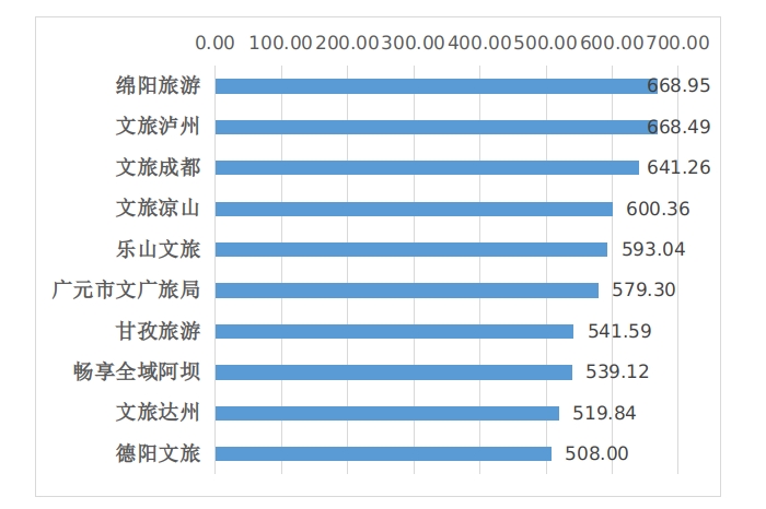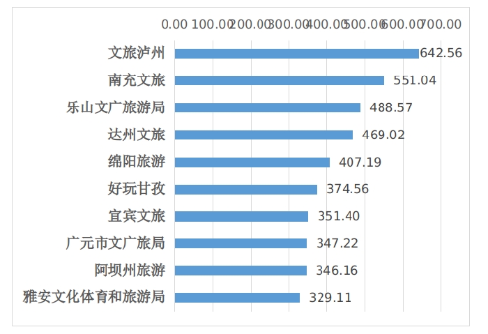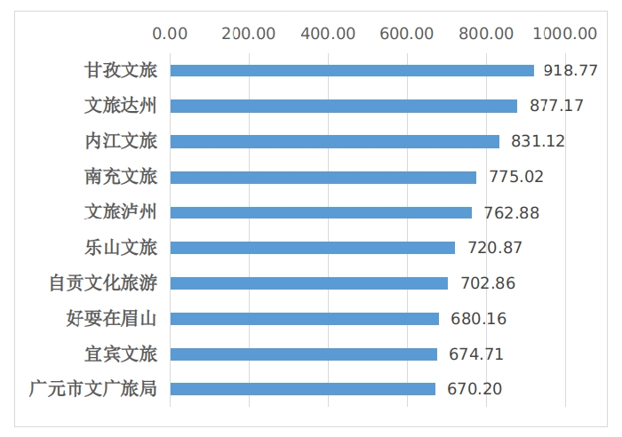 文旅头条号传播指数指标计算综合考量发文量、阅读量、图文收藏量、图文分享量、图文评论量、微头条点赞量、微头条评论量、微头条收藏量、直播评论量、涨粉量等。从2023年4月四川省市(州)文化和旅游行政部门头条号的表现看,前十位排名为:文旅泸州、南充文旅、乐山文广旅游局、达州文旅、绵阳旅游、好玩甘孜、宜宾文旅、广元市文广旅局 、阿坝州旅游、雅安文化体育和旅游局。