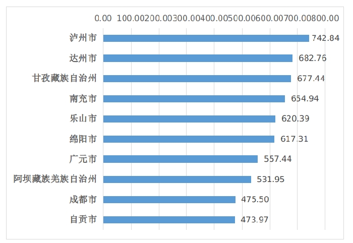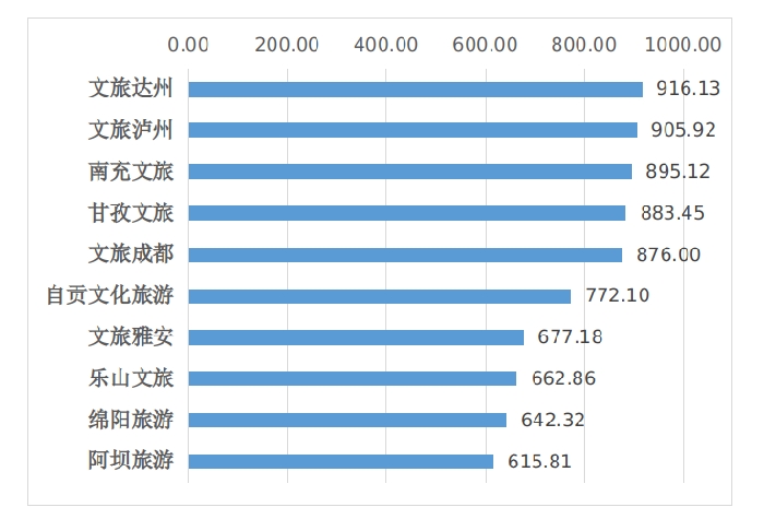 图1 2023年4月四川省市(州)级文旅新媒体综合传播力指数TOP10