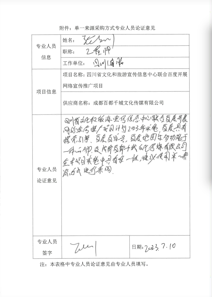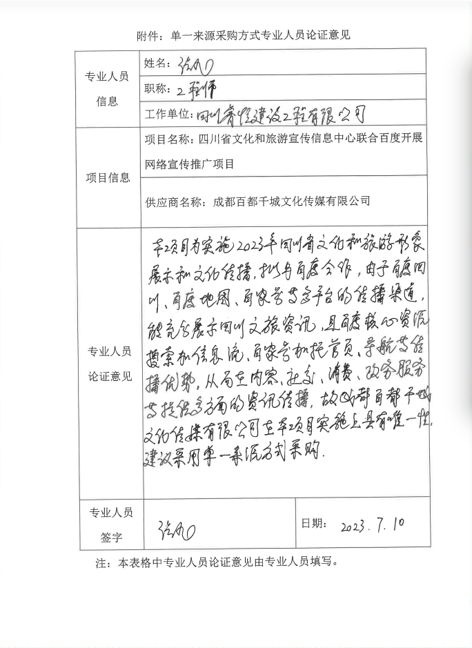 鉴于成都百都千城文化传媒有限公司是百度在四川地区唯一的联合运营方,并对同类项目完成度较好,考虑到宣传服务的延续性和运营方在四川地区的唯一性,因此建议该项目采用单一来源方式向成都百都千城文化传媒有限公司采购。