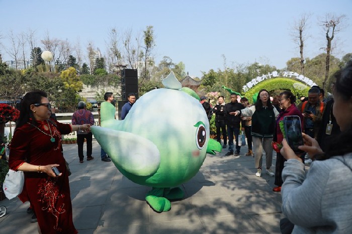 “快看!‘桐妹儿’也来了!”当天,世园会吉祥物“桐妹儿”也现身成都第六十届花会现场。2024年成都世界园艺博览会将于4月26日开幕,为迎接世园会的举办并进行前期预热,现场不仅可以看见世园会的吉祥物“桐妹儿”,还可以看到世园会相关知识的科普宣传。
