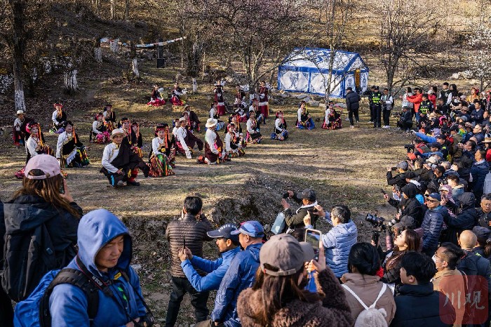 3月21日,“花开丹巴·为梨而来”2024美人谷·丹巴梨花春赏季活动在该县中路藏寨精彩开启。活动期间,一支由游客、媒体、网络达人等组成的千人梨花春赏团流连穿梭于如诗如画的中路藏寨之中,沉浸式体验《梨花下的成人礼——岁月织锦》分段式实景歌舞剧,深入感受丹巴非遗女子成人礼和嘉绒民俗的丰富文化底蕴。